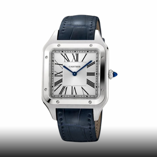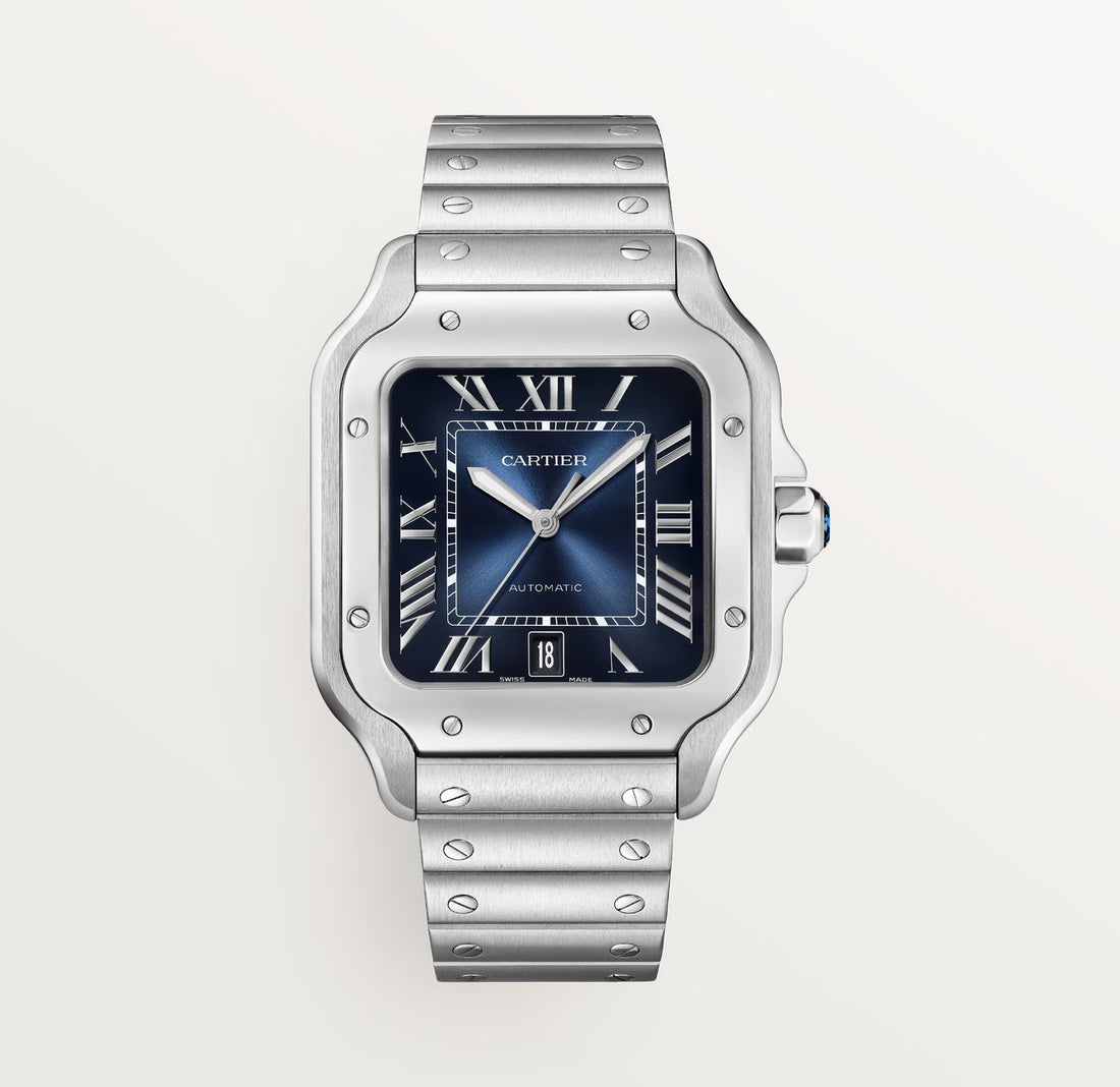 Cartier Santos de Cartier Skeleton watch, specifically the large model with green lacquer WHSA0028